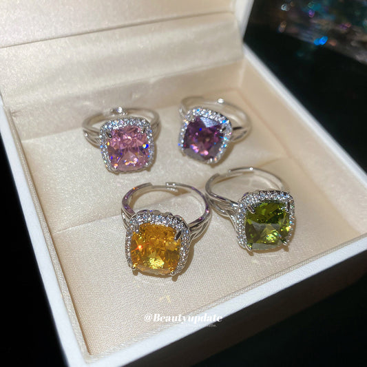 A廠【WR356】超閃鋯石幾何方形開口戒指時尚簡約百搭氣質食指戒輕奢高級感手飾 25.08-2