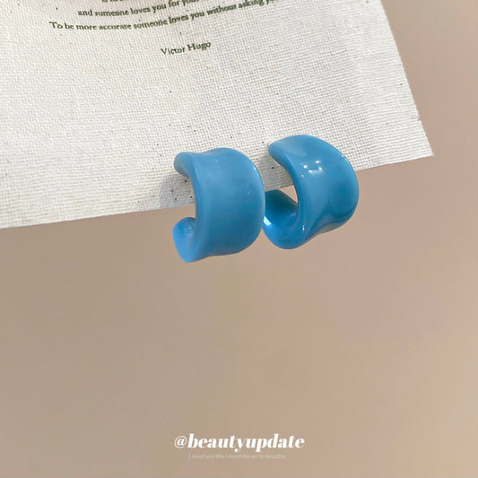 A廠【HE28113】925銀針樹脂C型耳環小清新森系簡約百搭氣質耳環個性耳環小眾高級感 25.08-2