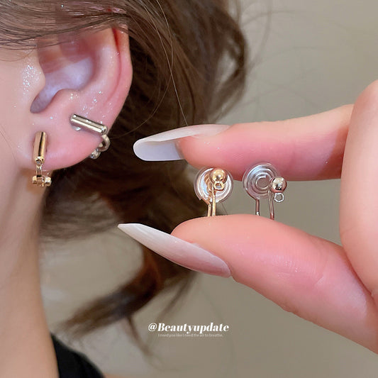 A廠【HE28082】歐美跨國時尚簡約幾何圓形耳夾轉換器宮廷風耳環小眾設計感耳飾女 25.08-2