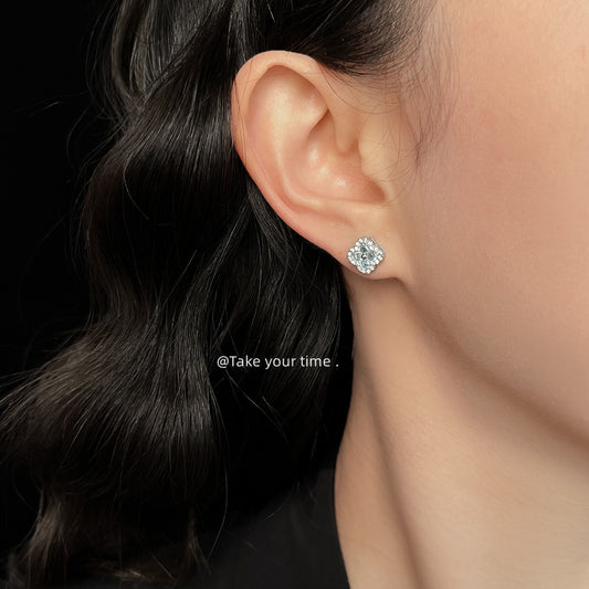 C廠【6516】微鑲鋯石海藍寶色立體925銀針新款耳環女 時尚簡約通勤輕奢風耳飾 25.08-2