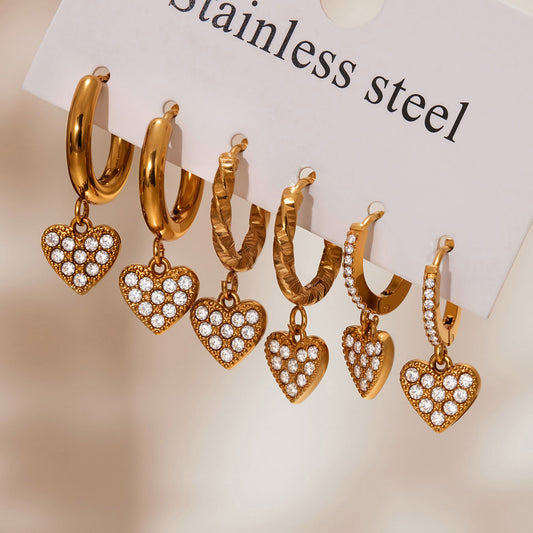 B廠【Q007】氣質簡約精緻小巧光面愛心吊墜耳環耳環鑲嵌鋯石不銹鋼耳環 25.08-5