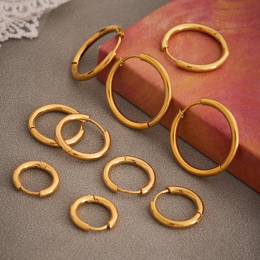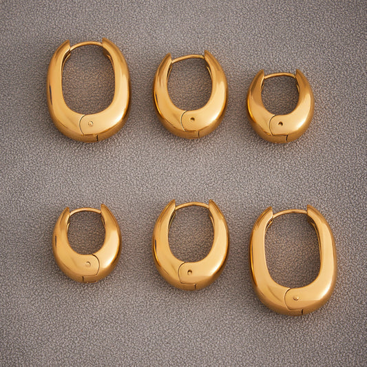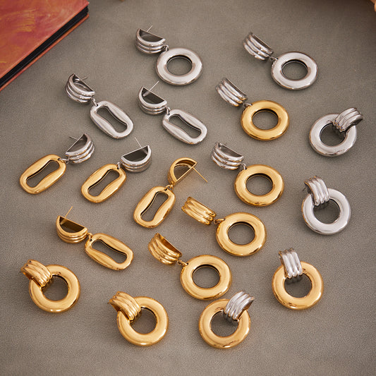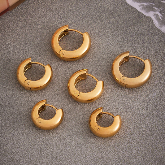 B廠【F596】ins小眾設計感不銹鋼幾何素圈耳環百搭時尚耳環鍍18k金 25.08-5