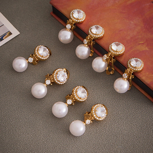 B廠【F584】歐美新款飾品無耳洞耳夾帶鑽仿珍珠耳飾不鏽鋼鍍18k金保色 25.08-5