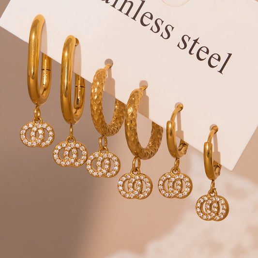 B廠【Q039】新中式雙環耳環鑲嵌鋯石耳環不銹鋼鍍18k真金簡約百搭耳飾 25.08-5