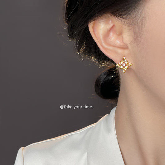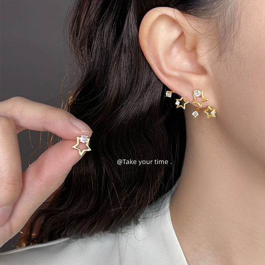 C廠【6654】芒星系~原創微鑲鋯石時尚高級感輕奢風簡約通勤925銀針耳飾耳環女 25.08-5