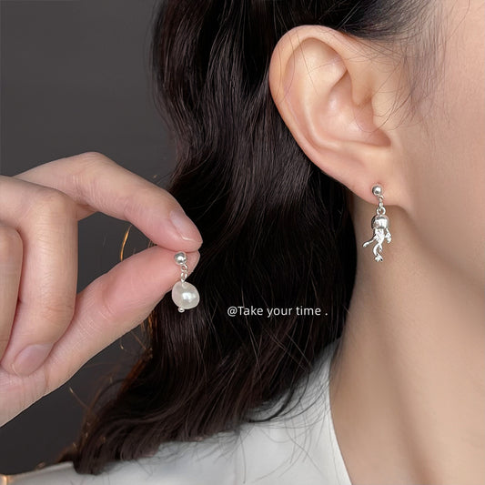 C廠【6666】巴洛克異形淡水珍珠不對稱設計感水母耳環925銀針新款耳環女 25.08-5