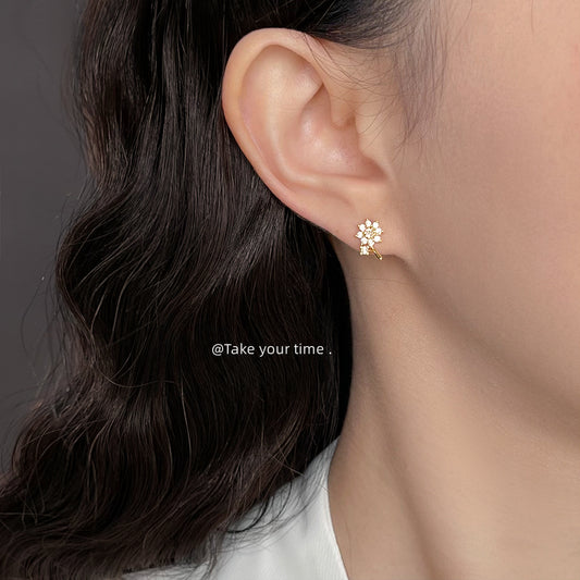 C廠【6670】微鑲鋯石925銀針鍍14K簡約可愛小清新小巧花朵耳飾新款耳環女 25.08-5