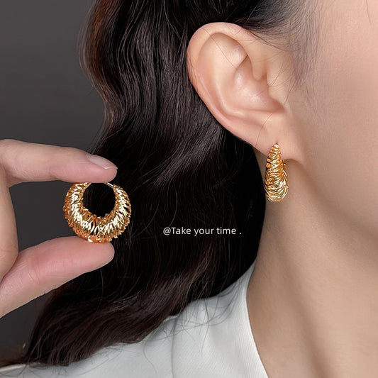 C廠【6659】時尚高級感輕奢風鏤空氣質爆款通勤新款圓形幾何耳環耳環 25.08-5