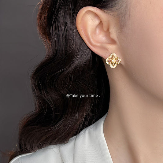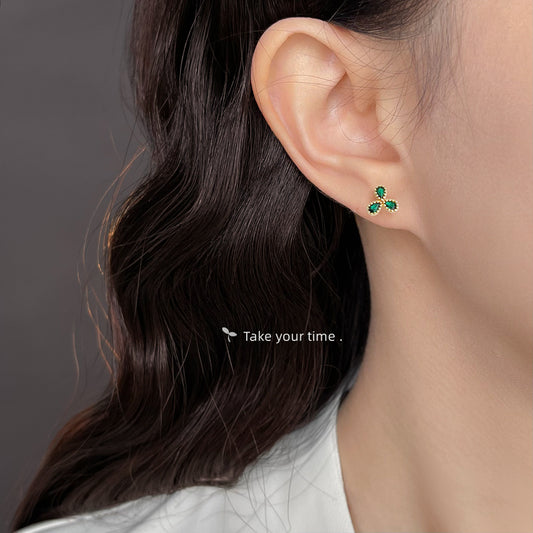 C廠【6677】五件組!幸運草小清新簡約通勤高級感輕奢風新款鋯石耳環耳飾 25.08-5