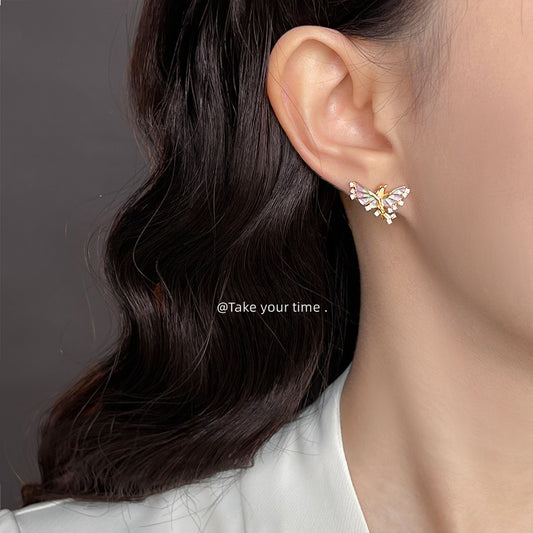 B廠【Q062】歐美飾品不銹鋼蝴蝶吊墜帶鑽耳環鍍18k真金跨境熱銷耳飾女 25.08-5