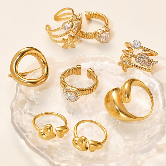 B廠【A293】小眾設計精緻戒指組合輕奢幾何愛心造型指環不銹鋼材質飾品 25.08-5