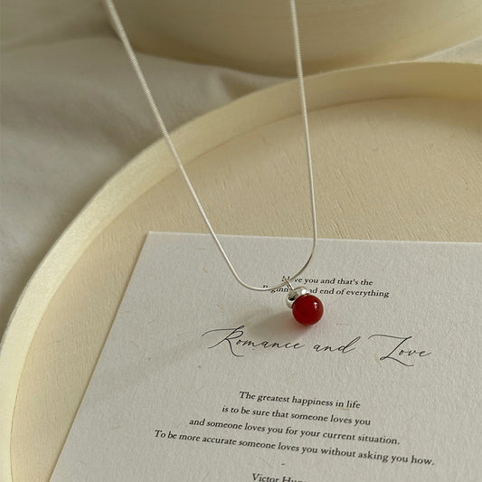 F廠【DQ0033N】S925純銀榛果紅瑪瑙項鍊女小眾氣質高級感圓珠瑪瑙百搭鎖骨鏈 25.08-5