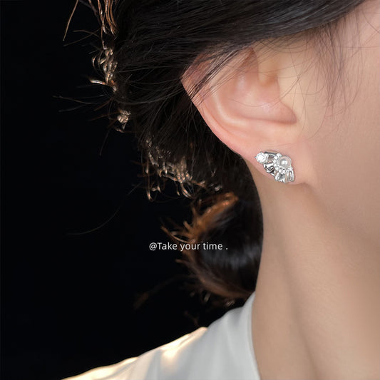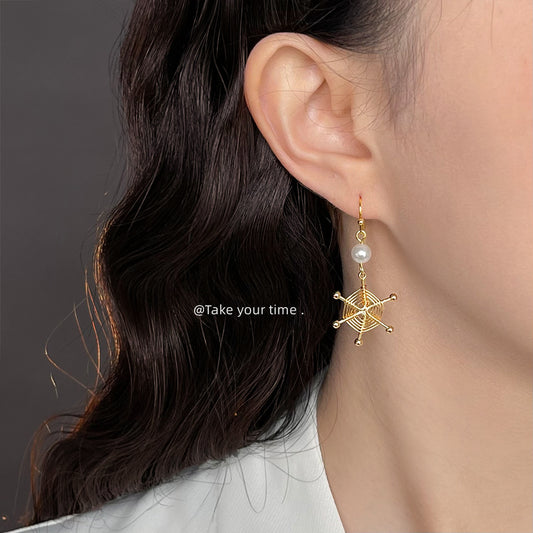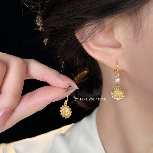 C廠【6707】淡水珍珠文藝復古不對稱設計感雛菊新款耳環中古風耳環飾品女 25.09-1
