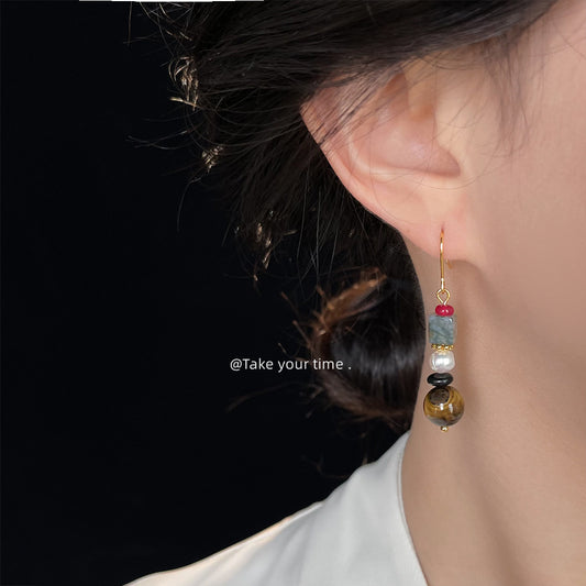 C廠【6705】天然石虎眼石文藝復古國潮民族新中式手工耳環創意耳環飾品女 25.09-1