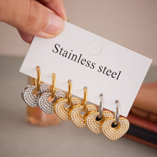 B廠【F620】歐美新款耳扣不鏽鋼滿鑽愛心大圈耳環鍍18k真金不掉色飾品 25.09-1
