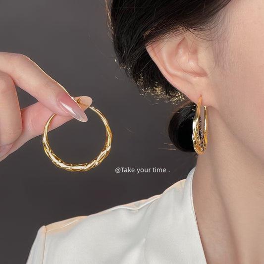 C廠【6573】時尚高級感圓形氣質幾何麻花大圈新款耳環誇張新款爆款耳環女 25.09-1