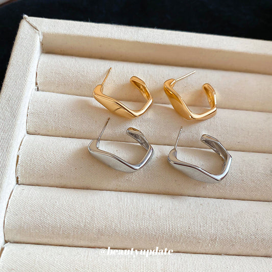 A廠【HE28641】925銀針歐美跨國幾何方形吊墜耳環時尚冷淡風耳環小眾設計感金屬耳環 25.09-3