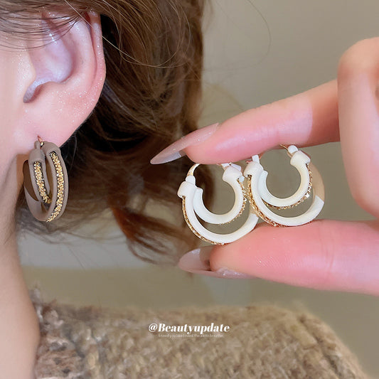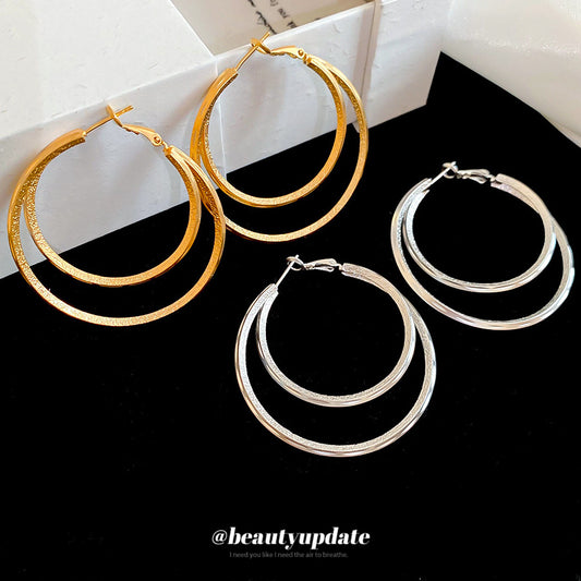 A廠【WE4596】18k真金電鍍霧面雙層圓形吊墜耳圈歐美耳環耳環小眾設計感耳飾女 25.09-3