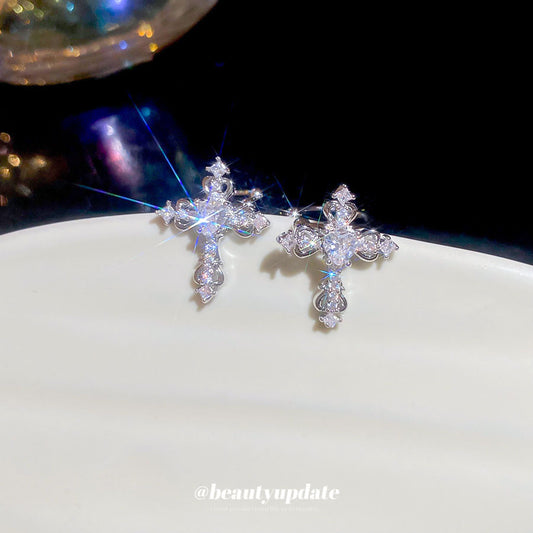 A廠【WE4560】超閃鋯石十字架鏤空無耳洞耳夾時尚氣質耳骨夾輕奢高級感耳環耳環 25.09-3