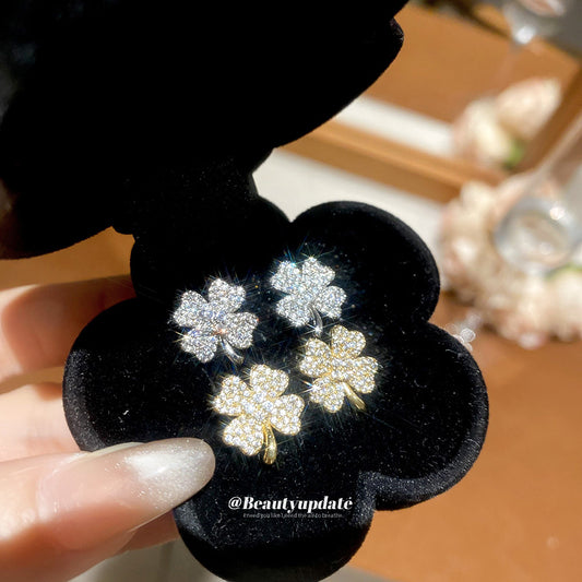A廠【HE28640】925銀針超閃鋯石花朵時尚耳環法式宮廷風耳環精緻輕奢高級感耳飾 25.09-3