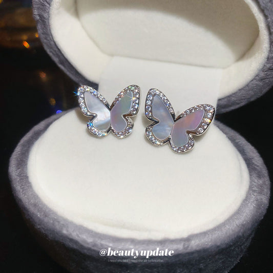 A廠【WE4562】925銀針鋯石貝母蝴蝶通勤耳環時尚簡約小巧氣質耳環輕奢高級感耳飾女 25.09-3