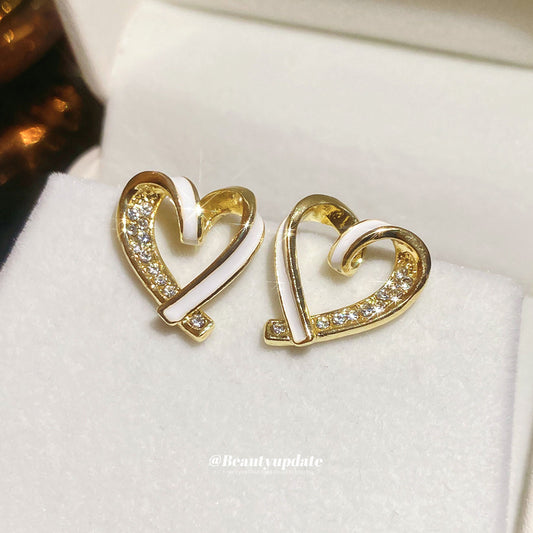 A廠【HE28546】925銀針鑲鑽滴油愛心吊墜耳環時尚簡約優雅通勤耳環輕奢高級感耳飾女 25.09-3