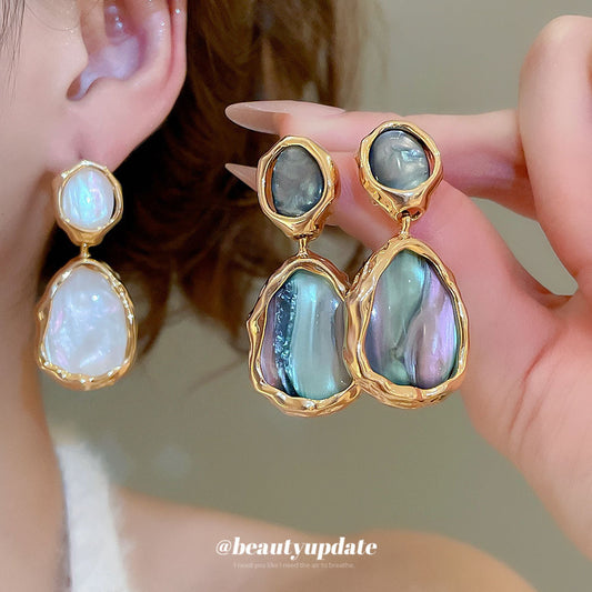 A廠【WE4576】18k真金電鍍925銀針圓形水滴樹脂吊墜耳環宮廷風耳環輕奢高級感耳飾 25.09-3