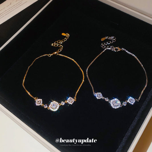 A廠【HB4567】超閃鋯石圓形鏤空吊墜手鍊時尚百搭氣質手環奢華輕奢高級感手飾女 25.09-3