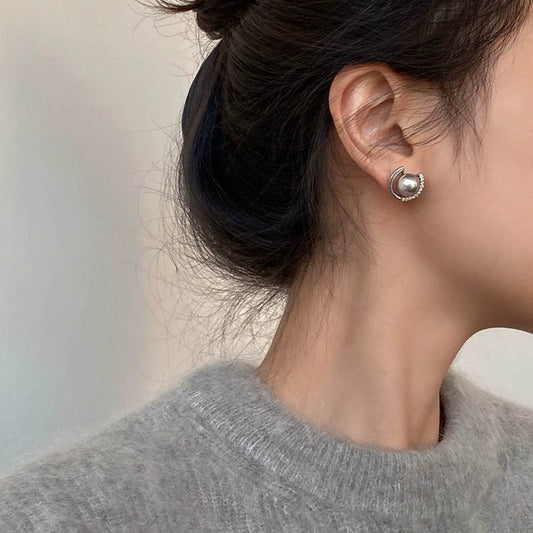 F廠【DQ11240E】S925純銀小眾設計感仿灰珍珠耳環女輕奢感優雅精緻弧度耳環品 25.09-4