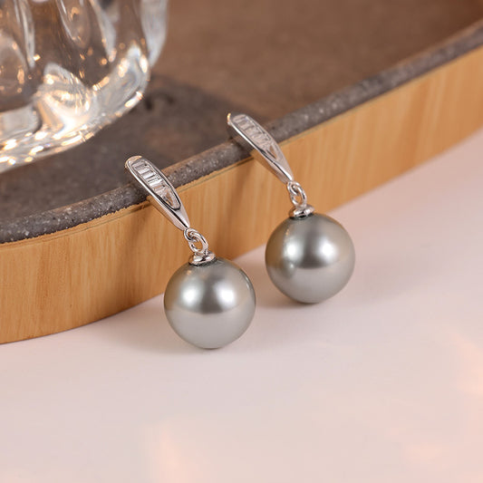 F廠【SE2163】韓版輕奢S925純銀銀灰色仿珍珠耳環正圓高級感小眾氣質耳飾品 25.09-4