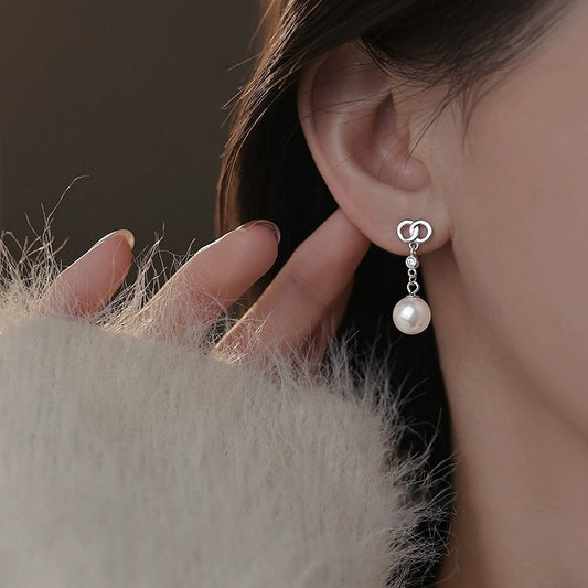 F廠【DQ11269E】S925純銀法式輕奢感仿珍珠耳環耳環小眾高級感雙環流蘇耳飾女 25.09-4