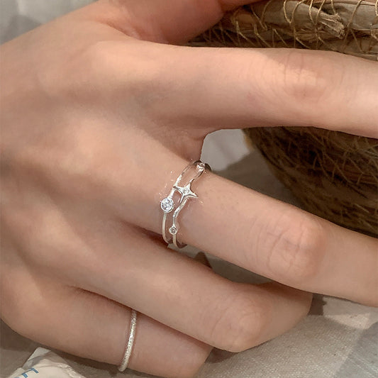 F廠【DQ8811R】S925銀四芒星戒指女小眾設計星星雙層指環時尚個性開口食指戒 25.10-1