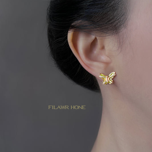 C廠【6923】原創設計微鑲鋯石925銀針琺瑯滴釉森系蝴蝶耳飾 清新甜美耳釘 25.10-3
