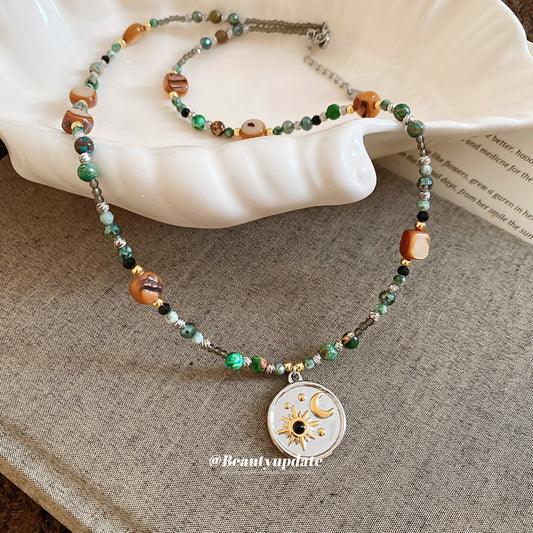 A廠【WN1559】不銹鋼貝殼串珠圓形月亮星星吊墜項鍊復古鎖骨鏈小眾設計感毛衣鏈 25.10-3