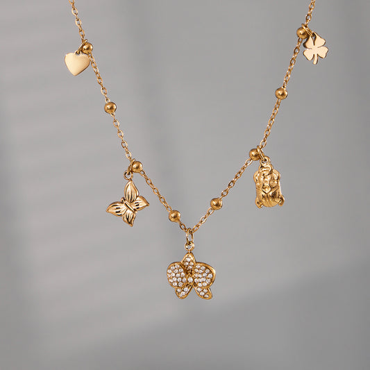 B廠【P1712】不鏽鋼diy蝴蝶吊墜項鍊鍍18k真金歐美時尚輕奢百搭珠寶首飾 25.10-3