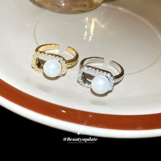 A廠【WR460】超閃鋯石珍珠幾何橢圓形開口戒指時尚簡約食指戒輕奢高級感指環女 25.10-3