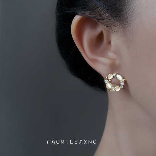 C廠【6958】原創設計玻璃貓眼石微鑲鋯石925銀針鍍14K通勤高級感圓耳環耳飾 25.10-4