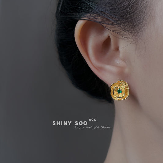 C廠【6954】文藝復古時尚高級感微鑲鋯石幾何立體方形925銀針耳環耳飾女 25.10-4