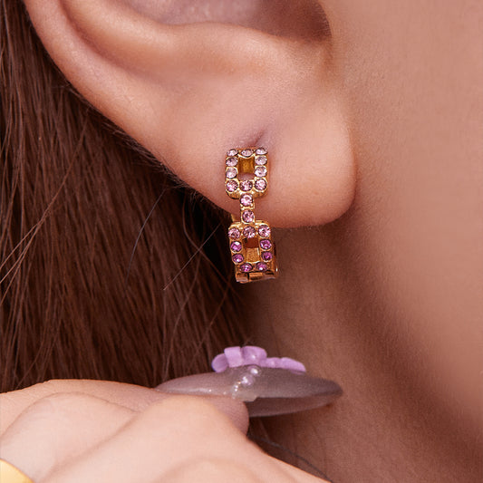 B廠【F659】方塊彩鑽鋯石超閃精緻小耳扣耳環不鏽鋼鍍18k真金百搭耳飾 25.11-1
