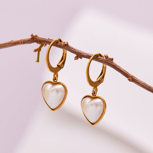 B廠【F017】跨國新款飾品不鏽鋼愛心貝珠吊墜耳環鍍18k真金耳環不掉色 25.11-1
