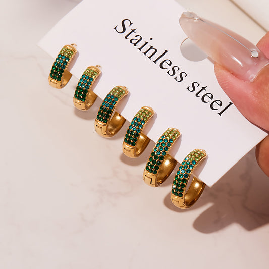 B廠【F752】超閃5A彩色鋯石小耳環卡扣耳飾不鏽鋼鍍18k真金跨境熱銷款 25.11-1