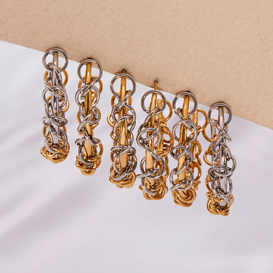 B廠【F677】不鏽鋼嘻哈環扣纏繞C型拼色間電耳環歐美小眾耳飾鍍18k真金 25.11-1