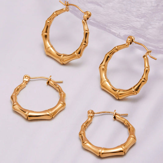B廠【F622】不銹鋼幾何竹節U型耳環ins小眾設計耳環鍍18k真金珠寶首飾 25.11-1