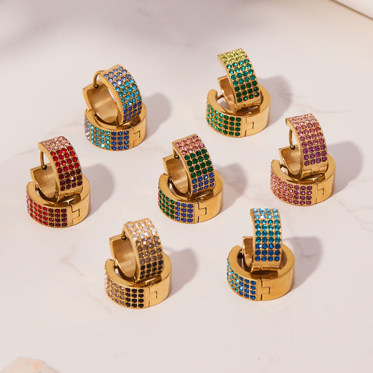 B廠【F651】彩鑽四排鋯石精緻卡扣耳環不鏽鋼鍍18k金時尚百搭個性耳飾 25.11-1