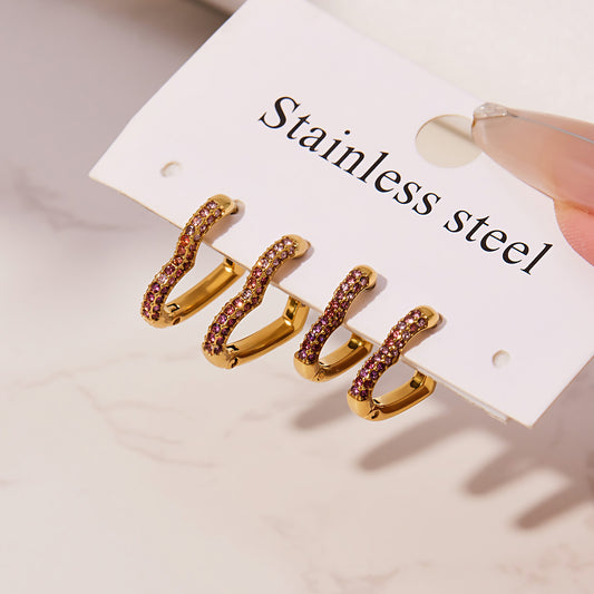 B廠【F650】彩色鋯石U形耳環不鏽鋼鍍18k真金蛇形滿鑽輕奢時尚百搭耳飾 25.11-1