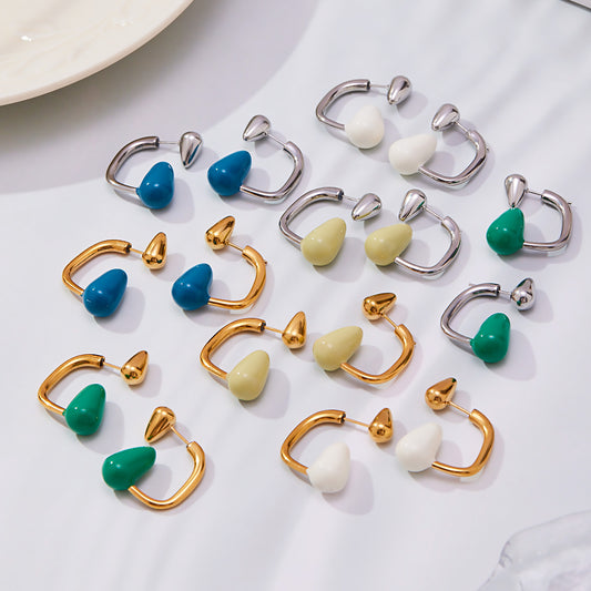 B廠【F319】不鏽鋼幾何水滴耳環鍍18k金琺瑯彩釉滴油個性百搭膠塞耳飾 25.11-1