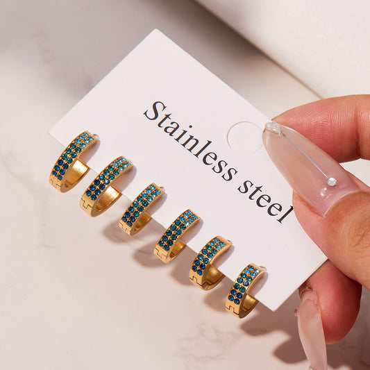 B廠【F798】簡約C型鑲彩鑽拼色鋯石耳扣不鏽鋼鍍18k真金輕奢小眾耳環女 25.11-1