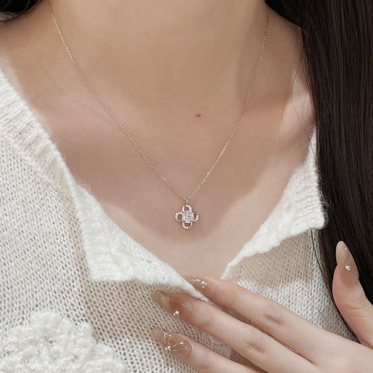 F廠【XDQ0301N】精工輕奢S925純銀十字金剛杵項鍊女高級感鑲鑽四葉草鎖骨鏈潮 25.11-1