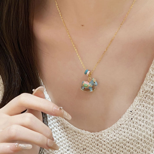 F廠【DQ2236N】馬卡龍歡樂搖搖木馬項鍊女S925純銀輕奢精緻琺瑯生肖馬鎖骨鏈 25.11-1