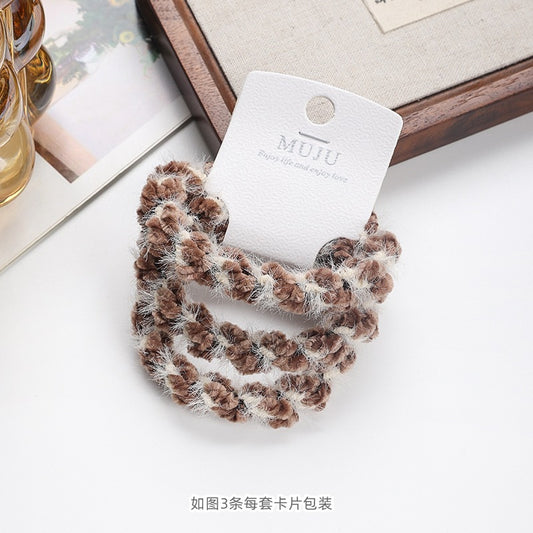D廠【B494】秋冬毛絨髮繩3條卡裝皮筋新款髮飾韓版高彈性頭繩髮飾高馬尾髮圈 25.11-1「D廠-單筆結帳需滿,NT$600出貨(不含運費)」